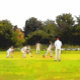 A simple art design of a Sunday afternoon village cricket match.