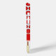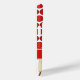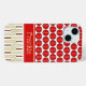 Cricket balls create a bright polka dot pattern on a white background on this sporty phone case. Cricket bats are also used in a complementary pattern. A red band across the case has space to add a name or other text to personalize.