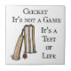 Cricket It's not a Game It's a Test of Life - Design also shows Cricket Bat, Cricket Ball, and Wickets.