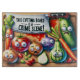 A cute array of choped vegetables shouting out "This Cutting Board Is A Crime Scene" humorous text