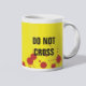 Yellow mug with two custom text fields "CRIME SCENE", "DO NOT CROSS". Blood stains.