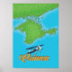Crimea vintage style travel poster map decorated with a beautiful blue prop plane.