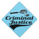 Modern typography includes a swoosh element. Criminal Justice features a magnify glass and a fingerprint. Background color can be changed to color of your choice. Criminal Justice graduation cap topper will help you stand out in the crowd.