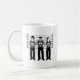 Three mimes standing in a police line-up, with the height chart. B/W drawing, on t-shirts, novelties, gifts.