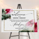 Perfect for framing or stand alone, this beautiful wedding welcome sign can be personalized with all your details. Modern Sage Green and Pink Watercolor wedding motif. Moody and ethereal , this beautiful hand painted watercolor illustration in shades of sage and emerald green with scarlet pink with gold fleck highlights - Hand written script calligraphy is combined with a minimalist, contemporary style font. A trendy and modern look for all seasons. This is part of a wedding stationery collection with matching wedding accessories. © WhimsicalArtwork created for the BarefootBride™