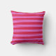 This throw pillow design features a striped pattern having colors like crimson and violet.