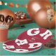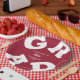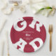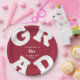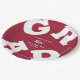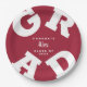 GRAD in bold white lettering curves around the edges of these crimson red graduation party paper plates - available in 2 sizes. Congratulations above the name of your graduate and the Class of below. The perfect addition to your table decor for upcoming grad parties. **TIP: Click on CUSTOMIZE button; click on COLOR box on top right; enter your color hex code in the #xxxxxx box to match your school colors. SEE ENTIRE COLLECTION of pre-done color combinations and more in our store.