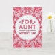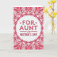 This Mother's Day card features a bright white oval at the center, like a calm little stage for a family message, surrounded by a blooming ring of floral shapes that feels like a gentle hug ❤️. Inside the oval, the text reads “FOR AUNT ON MOTHER’S DAY!” with “FOR AUNT” in rounded serif letters and “ON MOTHER’S DAY!” in a narrower serif style beneath it. The lettering shifts between pink and deeper red tones, and tiny heart icons sit near the word “FOR,” adding a sweet, affectionate wink. Around the message, a radially balanced flower‑mandala border spreads outward in layered petals, suggesting closeness and care through its soft, repeated shapes 🌼. The colors move through light blush, rose, and bright fuchsia, with small touches of white that make the pattern feel airy rather than heavy. Just inside the floral ring, a thin decorative rim curls in a filigree-like pattern, guiding your eye back toward the center. The overall look is bright and evenly lit, with the white oval staying crisp against the richly shaded pink border. The outer frame is packed with stylized petals and abstract botanical forms arranged in a symmetrical circle around the central oval.