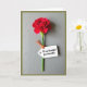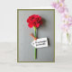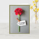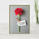 This greeting card features a single deep red flower centered vertically, its velvety petals curling inward like a gentle embrace ❤️. A slender green stem runs straight down the middle against a cool gray background with faint, wood-grain-like lines that add quiet texture. Soft, diffused lighting creates tender shadows in the folds of the petals, giving the bloom a calm, affectionate presence. A small white rectangular tag hangs from the stem on a thin orange cord, tilted slightly as if it was just tied on with care. The tag carries the message “To my beautiful Grandmother,” placed neatly in dark lettering across the center of the tag. The contrast between the smooth tag, the fibrous cord, and the textured backdrop adds a cozy, intimate feel 🌼. A subtle border frames the scene, and the orange cord loops once before trailing down beside the stem.