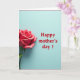 Designed with a graceful floral focus, this card features a rich crimson flower blooming near the lower-left, its layered petals curling inward like a slow, tender embrace ❤️. Soft highlights and shadows glide across each petal, giving the bloom a rounded, lifelike depth that feels quietly romantic. A green stem drops downward with a few fresh leaves, adding a calm, natural counterpoint to the red. The background is a pale cyan-blue field that sets a peaceful scene and makes the flower’s warmth stand out. In the upper-right, a short message appears in strong red lettering, visually echoing the bloom as if the words are leaning toward it with affection. The text sits with comfortable spacing, leaving plenty of open blue around it so the design can breathe 🌼. A thin red line frames the entire front, forming a neat rectangular border close to the edges. The border matches the message color and runs evenly on all four sides.