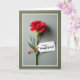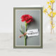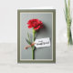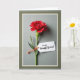 This card features a single deep red flower shown in sharp detail, set against a softly textured grey-green background that feels calm and intimate. The ruffled petals curl outward like an offered gift, and the rich reds fade into gentle shadows that suggest a close, caring bond ❤️. A sturdy green stem holds the bloom, with one slim leaf and a small bud that leans nearby like a quiet companion. Tied to the stem with a bright orange twine is a small white tag that reads “to my beautiful friend,” with the words centered and written in flowing dark ink. Soft, diffused light falls from one side, creating mild shadows that bring out the flower’s texture and the background’s grain. A narrow creamy beige inner border frames the image, followed by a wider muted olive-green outer border that gives the design a grounded finish 🌼. The orange twine loops diagonally around the stem, and the white tag hangs slightly to the right of center.