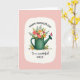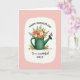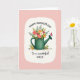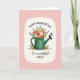 This card features a forest-green watering can filled with a lively mix of flowers, like blush pink blooms, sunny orange petals, crisp white blossoms, and deep red accents nestled among fresh green leaves. The bouquet looks freshly gathered, with a slightly untamed arrangement that feels like a sweet garden gift shared between close family or friends ❤️. A red butterfly rests on the spout, adding a tender, fleeting moment as if it paused to admire the flowers. The main illustration sits inside a soft, cloud-shaped white frame that gently stands out against a wide pink background. A few loose petals scatter near the base of the watering can, giving the scene a natural, just-picked look 🌼. Across the top, “HAPPY MOTHER’S DAY” is written in an arched line in dark lettering. Near the bottom, “To a wonderful NIECE” appears centered, with the first words in a flowing style and “NIECE” in all caps, also in dark text. The pink backdrop is smooth and open, with the white border softly fading at the edges around the floral scene.