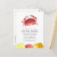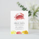 A set of crab boil postcard style invitations for your next seafood related birthday barbecue or party. These invitations feature simple charcoal black text, along with a unique crimson red watercolor style crab illustration centered towards the top. All elements of this invitation are adjustable by using the customize function.
