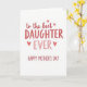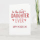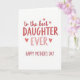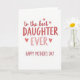 This greeting card features a bright white background with centered lettering that feels affectionate and close, like a note shared between family members ❤️. Near the top, the phrase “to the best,” appears in rich crimson, slightly slanted and flowing, setting a tender tone. Just below it, “DAUGHTER” is the largest word, set in deep red with a faint lighter edge that helps it stand out. The word “EVER” follows in a softer pink and a thicker style, adding a gentle, friendly warmth to the middle of the layout. Small hearts in alternating deep red and light pink are sprinkled around the words, like little pauses of affection 🌼. Along the lower portion, “HAPPY MOTHER’S DAY” is written in a simple red type style, aligned neatly beneath the main message. The overall arrangement is vertically stacked and well balanced, with generous white space framing the red and pink text. Tiny heart doodles sit near the corners and between lines, with slightly uneven outlines that make them feel drawn by hand.