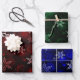 Crimson Emerald & Royal Blue Snowflake Pattern Wrapping Paper Sheets