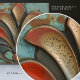 Introducing "Crimson Flare," a beautifully crafted ceramic tile that exudes the charm and style of mid-century modern art. This piece showcases a striking array of teardrop-shaped elements, with each form bathed in a blend of rich colors. The vibrant crimson and scarlet hues are masterfully juxtaposed with the subdued tones of charcoal and taupe, creating a dynamic visual effect. The surface of the tile is speckled with a fine mist of golden and copper flecks, reminiscent of a vintage patina that adds depth and character to the design. A central heart motif, detailed in a subtle burnt sienna, anchors the composition, symbolizing the warmth and passion inherent in the design. Set against a backdrop of teal with hints of aquamarine, this tile is a statement piece, perfect for adding a touch of retro elegance to any room.