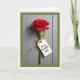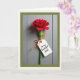 Designed with a single deep red flower as the focus, this card shows ruffled petals resting against softly textured gray wooden panels. The rich red bloom and slender green stem create a romantic contrast, like a quiet gesture meant for someone close ❤️. Near the lower part of the stem sits a small white gift tag that adds a friendly, personal touch without feeling fussy. The tag is tied on with a thin orange twine bow, and the lettering reads “to my beautiful Aunt” in dark ink centered on the tag. The flat, top-down view highlights the tactile look of the petal edges and the subtle wood grain, with gentle side lighting that forms soft shadows. A calm border frames the whole scene in olive green with a narrow cream edge, adding a cozy, caring feel 🌼. The red bloom sits slightly above center, with the tag hanging just below it against the gray boards.