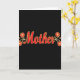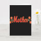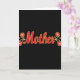 This card features the word “Mother” large in the center, drawn in flowing red lettering with a shiny look and a thin golden outline that gives it a raised, classic feel ❤️. The background is deep black, making the warm colors stand out like a spotlight on a cherished name. On both the left and right sides, matching floral clusters frame the word, as if they’re gently holding it in place like a caring embrace. Each cluster shows two stylized blossoms with red petals edged in gold, and small lime-green centers that add a lively spark. Curved tendrils and leaf shapes extend outward in gold, with occasional orange-red touches that add warmth without crowding the design. The balanced layout and glowing outlines create a cozy, affectionate mood, like a quiet moment of closeness shared between loved ones 🌼. The text sits centered horizontally with the flowers aligned symmetrically at mid-height, and the gold-lined stems curl outward against the black backdrop.