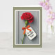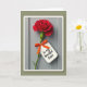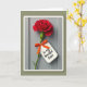 This design shows a single rich red flower centered against a textured gray, paneled background, its ruffled petals catching soft light that adds gentle shadows and depth. The deep crimson bloom feels like a quiet gesture of closeness, as if it’s being offered with a tender, sisterly affection ❤️. A glossy orange ribbon is tied neatly around the green stem just below the flower head, adding a warm accent against the cooler backdrop. Hanging from the ribbon is a small white gift tag, tilted at an angle, with the message “to my beautiful Sister” written in dark lettering. The text sits centered on the tag and stands out clearly against the bright white surface. Behind everything, the gray background shows faint vertical woodgrain lines that keep the scene calm and understated. A crisp white border frames the image, and beyond it sits a muted olive-green outer area that creates a layered, gallery-like look 🌼. The orange ribbon has a smooth sheen, and the tag’s corners look sharp against the soft, rippled edges of the petals.