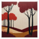 A vibrant and eye-catching depiction of a forest with fiery red trees. This unique artwork is sure to add a touch of drama and conversation to any space.