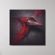 It is a captivating artwork portraying the fossilized head of a dinosaur. This abstract masterpiece creates a 3D effect in blood red and charcoal hues, as the ancient creature emerges from the dark stone. Explore the intriguing intersection of history and art in this vivid portrayal.