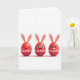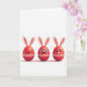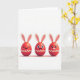 Designed with three egg-shaped bunny figures lined up side by side on a bright white background, the scene feels light and friendly 🐰. Each character is a deep red with long upright ears, soft pink on the inside, and a creamy white trim along the outer edge. Their faces add a gentle sense of closeness, with one giving a flirty wink, the middle one smiling wide as if leaning into the moment, and the third grinning like a supportive friend 🐇. Bright, direct lighting creates faint, soft shadows under each figure to keep them grounded without cluttering the space. A white zigzag band wraps across the lower part of every red shape, adding a crisp graphic accent. There’s no text on the front, so the simple artwork stays centered and easy to take in. The white zigzag detail sits like a little band near the bottom of each bunny-egg, sharp against the red.