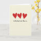 Designed with three large red hearts across the top, this card keeps the focus on simple signs of affection ❤️. The hearts sit side by side in a neat row, with slightly uneven edges that look gently drawn and add a human touch. Below them, a flowing line of lettering reads “to the best mom there is…” and it sits centered under the hearts for a calm, balanced look. The text appears in a dark ink tone that stands out clearly without feeling harsh against the soft background. A warm cream backdrop with a light paper-like texture sets a cozy, close-to-home setting, like a quiet kitchen note left for someone you adore 🌼. The spacing leaves plenty of open room around the shapes and words, letting the caring mood come through in the stillness of the design. Three crimson hearts line the upper portion, and the message sits just beneath them on the creamy textured field.