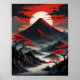 A mesmerizing blend of traditional Japanese art and modern design, this captivating artwork showcases the iconic Mount Fuji bathed in the warm glow of a fiery sunset. The bold use of color and dramatic lighting creates a sense of awe and wonder, inviting viewers to immerse themselves in the beauty of this timeless landscape.
