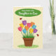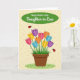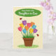 This card features a joyful digital illustration centered on a full bouquet bursting from an earthy brown planter, with petals in lively pinks, sunny yellows, calm blues, warm oranges, and deep purples. Slender green stems rise upward, giving the arrangement a gentle sense of growth, like a friendly embrace in flower form ❤️. The pot sits on a curved patch of green that hints at a quiet garden moment, while the cream background keeps things light and airy. Scattered peach-colored polka dots drift behind the flowers, adding a soft, sweet rhythm to the scene. Two small red insects with dark spots and fine antennae hover nearby, their close, drifting paths suggesting a tender little companionship. Near the top, a green oval banner holds the main message in white lettering, with the text centered and easy to spot. The lettering stands out crisply against the green shape, guiding your eyes from the banner down into the bouquet. The insects float to the right side of the arrangement, and the peach dots are spaced loosely across the cream backdrop 🌼.