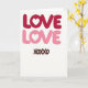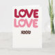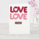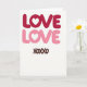 This greeting card features a white background with the word “LOVE” shown twice near the top. The top “LOVE” is in deep red, and the one just below it is in soft bubblegum pink. In both words, the “O” is replaced by a small white heart, so the heart sits right in the middle of each line. The letters are rounded and slightly shaded, giving them a gentle, puffy look. Near the bottom, “XOXOXO” appears in a warm brown, written in a loose, hand-drawn letter style. With so much open white space, the colors and hearts stand out and keep the message easy to read. It feels meaningful because it says “I care about you” in a simple, direct way that fits romance or close friendship 🥰❤️.