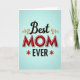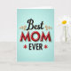 Designed with a bright, celebratory layout, this card centers on the large word “MOM” in glossy, three-dimensional red letters that seem to lift off a calm light-blue background. Above it, the word “Best” appears in dark charcoal lettering with smooth, flowing strokes, flanked by curling golden flourishes that feel like a gentle embrace ❤️. Below, “EVER” sits in a sturdy charcoal type style, balanced by two small red star-like marks on either side, like little bursts of affection 🌼. The layered lettering and soft shading create depth, with faint shadows tucked beneath each word to make the design feel touchable. The warm color contrast between red, gold, charcoal, and blue gives the message an affectionate, friendly energy without needing any characters. Text is stacked vertically—“Best” at the top, “MOM” in the middle, and “EVER” at the bottom—so your eyes naturally travel down the page. Golden curls frame the upper word, while the red accents near the bottom add symmetry against the airy blue backdrop.