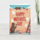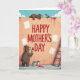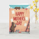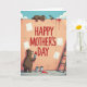 On the front of the card a peach-toned wall becomes a big painted backdrop under a clear blue sky with puffy white clouds. Across the center, large crimson letters read “HAPPY MOTHER’S DAY,” standing out strongly against the soft wall. At the lower left, a large brown upright animal holds a brush loaded with red paint, leaning in as if carefully finishing a stroke with caring focus ❤️. Near the top, a smaller brown animal lounges on the wall, giving a friendly, tender look toward a small bird perched close by. The bird’s feathers show bright blue and yellow, adding a sunny touch 🌼 while it watches the painting unfold. Red paint drips trail from the top edge and down the wall, and a few paint cans sit on the ground with one showing a red spill. On the right side, a wooden ladder rests against the wall beside scattered blank white squares.