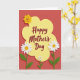 This design shows a rich red background with a large, uneven yellow shape in the center, like a soft cloud, setting a warm stage for a loving note ❤️. Across the middle of the yellow shape, a short message appears in flowing red lettering, centered and easy to spot at first glance. A curled yellow flower sits near the upper left, leaning inward as if drawn toward the words. Along the bottom left and bottom right, two white flowers with bright yellow centers mirror each other, their green stems and leaves reaching up like an affectionate embrace. A smaller white bloom rises at the bottom center, adding a gentle, close-knit touch that feels like family gathered together 👩. Soft shadows under the yellow shape, flowers, and stems create a layered, paper-cut look that adds depth without clutter. The colors stay simple—red, yellow, white, and green—so the tender mood comes through in the way the elements lean toward the center. The red message sits centered on the yellow shape, with the white flowers anchoring the lower corners and the small bloom tucked at the bottom middle.