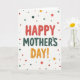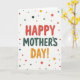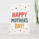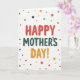 This card features a digital illustration on a creamy, parchment-like background with a cheerful Mother’s Day message centered front and center ❤️. The text is arranged in three stacked lines, with “HAPPY” at the top in warm crimson letters that look softly puffed, like festive balloons. “MOTHER’S” sits beneath it in deep teal, giving a calm, steady contrast that feels like a reassuring hug. “DAY!” finishes the stack in sunny golden orange, capped with an exclamation point that adds extra sparkle to the layout. Around the words, scattered polka dots in matching crimson, teal, and golden orange drift across the background like confetti at a family brunch 🌼. The letters and dots have a lightly painted texture, giving the design a cozy, tactile look without feeling rough. The overall lighting stays bright and even, and the dots vary in size as they spread outward across the open space.