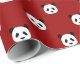Crimson Red - Minimalist Panda Pattern Wrapping Paper