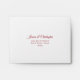 These RSVP envelopes are simple yet elegant. Designed as an A2 sized envelope to be used with 4.25" x 5.5" sized cards, they feature a classic white background with a pre-printed address on the front in elegant script lettering. The inside flap is a crimson red color with faux foil silver gray lace frills. wonderful and classy way to make it easy for your guests to send in their response cards.