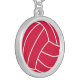 Crimson Red Volleyball Silver Plated Necklace