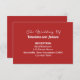 Provide the details of your wedding reception to your guests with this plain text on a solid crimson red background enclosure card, a color to celebrate love and sophistication. A simple design for couples or hosts who prefer plain text without any things in the background. Texts are center aligned and combination of calligraphy and script fonts to enhance the style and sans serif font to enhance readability. The white text contrasting on the solid crimson red background also enhances readability and clarity. Customize it by typing the names of the bride and groom and reception details. Please check the appearance of the front and back sides after typing texts. If the appearance is pleasing to you, you can place place your order now. If you need to resize and reposition the texts to fit on this enclosure card or on the size that you will choose, please adjust in the design tool. You can also change the font style, font color and background color in the design tool. Congratulations on your engagement! Wishing you a lifetime filled with love and happiness.