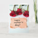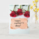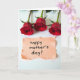 The front design shows three deep red rose blossoms arranged in a neat row across the upper area of a bright white background, their green stems reaching upward as if leaning close together like old friends ❤️. Each flower opens with layered, velvety petals that feel rich and romantic, drawing your eye from left to right. Soft, diffused light falls across the roses, keeping shadows gentle and letting the reds and greens look natural and calm. In the lower half, a pale peach rectangular note sits centered, with intentionally torn edges that add a cozy, intimate touch. A short greeting is written in black lettering on the note, placed in the middle so it’s easy to read against the warm paper tone 🌼. The strong contrast between the red blooms, peach note, and white space keeps the layout simple and focused. The three roses sit along the top edge of the card, while the peach note anchors the bottom center with its black message.