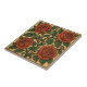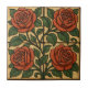 The vibrant red-orange hues of the roses are beautifully complemented by lush, deep green leaves and intertwining dark brown vines that gracefully create a continuous botanical tableau. The entire design is set against a warm, antique gold background with a subtly textured finish, enhancing its vintage charm. This tile set celebrates nature's beauty with its organic forms and rich, earthy color palette. The strong black outlines around each element lend a distinct, handcrafted appeal. Perfect for creating a stunning focal point in a kitchen backsplash, a charming border in a bathroom, or as an accent in a living area, this tile brings an air of classic sophistication and natural grace to any interior.