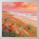 Artwork of a shoreline with red and pink flowers cascading along the beach. This piece captures a sunset casting a warm, rosy glow over a sweeping beach lined with brilliant red and pink poppies. The soft pastel texture creates the feel of warm sand beneath your feet and the smell of sea salt and blooming flowers. It evokes a deep sense of romance, tranquility, and natural wonder. The composition seamlessly guides the eye along the shoreline toward the ocean waves. Above, the sky is a display of soft washes of peach, crimson, and lavender to capture the fleeting light of a coastal sunset. This print is the perfect way to bring a warm, coastal embrace into a primary bedroom, a bright sunroom, or any space that deserves a touch of poetic beauty.
