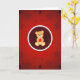 The front design shows a light brown bear with gentle black eyes and a small pink smile, holding a bright red star close like a shared secret ❤️. The bear sits centered inside a deep maroon circle framed by a crisp white ring, giving the scene a cozy, close-up feel. Behind it, the background shifts through a red gradient, moving from a lighter red near the top to a deeper crimson toward the bottom. Scattered across the backdrop are many star shapes in different sizes, some shown as faint outlines and others filled in with a darker red, like a quiet night sky made for two. The rounded shapes and smooth edges keep everything soft and friendly, with the bear’s pose suggesting a tender, giving moment. There’s no large headline, and any wording is kept minimal, placed neatly away from the central circle in a small, light-colored font that stands out against the red. Tiny star accents continue around the circle, including a few near the upper corners, with one small star sitting close to the lower edge 🌼.