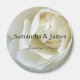 Attractive crisp white rose wedding magnet personalized with your names and date.