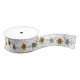 Crispy White Buzzing Bees & Cosmos Flower Blooms Grosgrain Ribbon