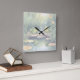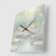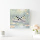 This is a fun clock there are two little dogs getting ready for some croaking time, they are sitting on a rock with yellow flowers sme lilly pads and some morning fog.