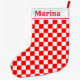 Perfect! Exactly what I ordered! I uploaded a picture of my blue chow, and the screen print was incredible. the back side of the stocking was the red and black checkered print. my puppy's name was also printed on the cuff of the stocking. PERFECT! Highly recommend this product! My puppy's name was screen printed onto the cuff of the stocking, the font was perfect!