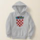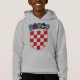 The coat of arms of Croatia consists of one main shield and five smaller shields which form a crown over the main shield. The main coat of arms is a checkerboard (chequy) that consists of 13 red and 12 silver (white) fields. It's commonly known as šahovnica ("chessboard", from šah, "chess" in Croatian) or grb (literally coat of arms). The five smaller shields represent five different historical regions within Croatia.