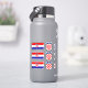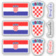 This custom cut vinyl sticker features the 3 Croatian flags, 3 emblems and 3 text templates (for example: your name, Croatia, Hrvatska) in blue. black and red handwriting font.