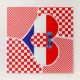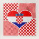 This colorful puzzle features the flag of Croatia in a heart-shaped collage surrounded by red and white checkers.