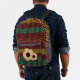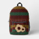 Beautiful backpack with a crochet-style pattern in earth, brown, green colors.
